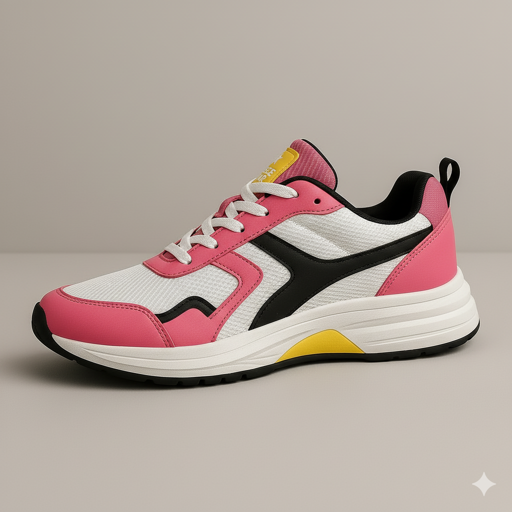 • Electric Energy: The striking combination of hot pink mesh, crisp white overlays, black structure, and vibrant neon yellow details demands attention.